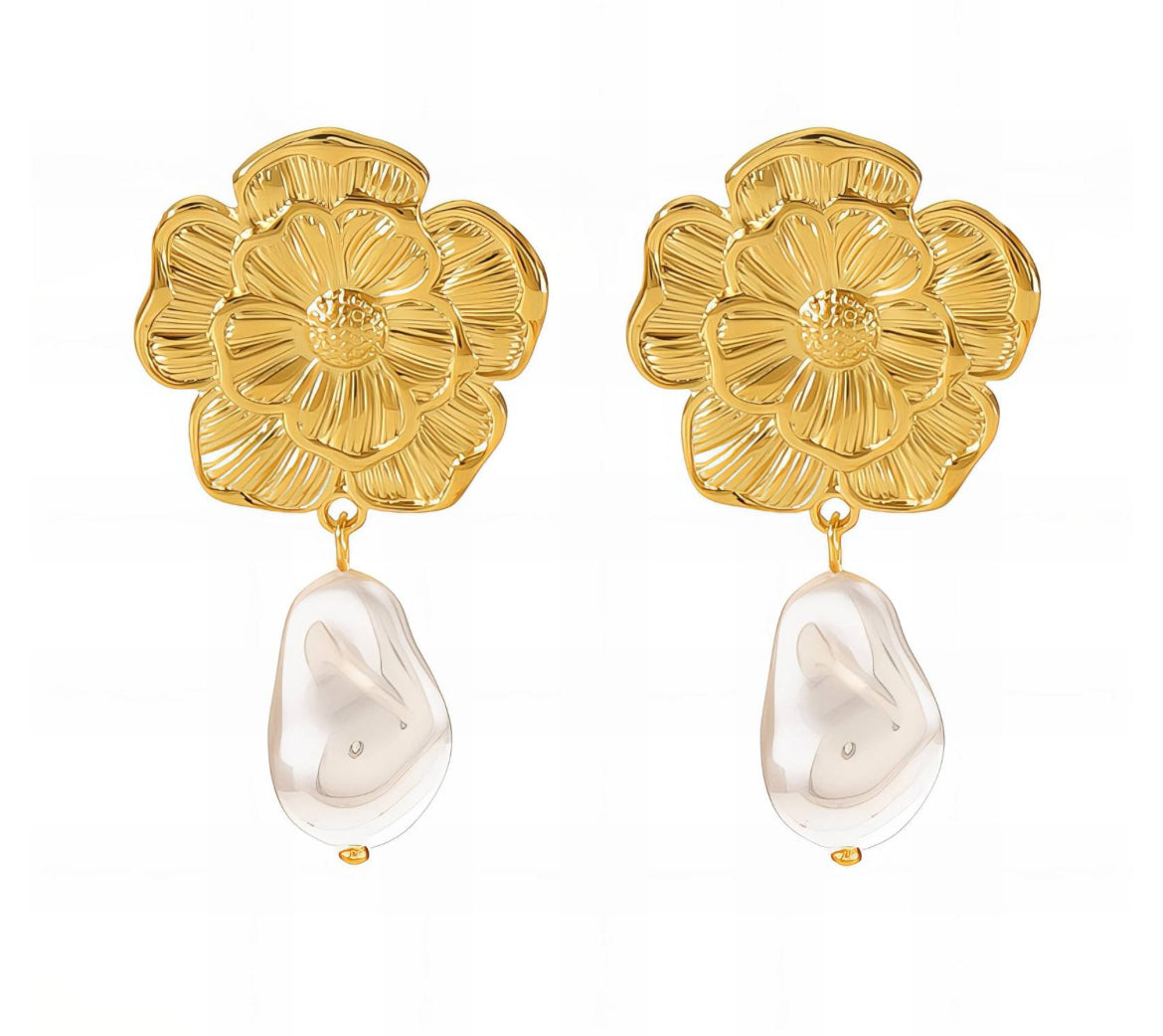 - Material: Gold plating, Stainless steel, Pearl imitation.